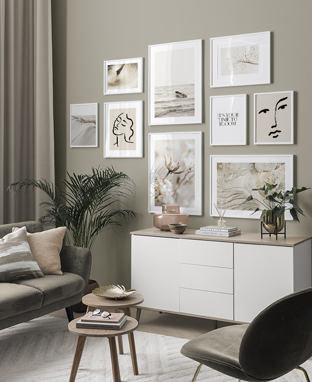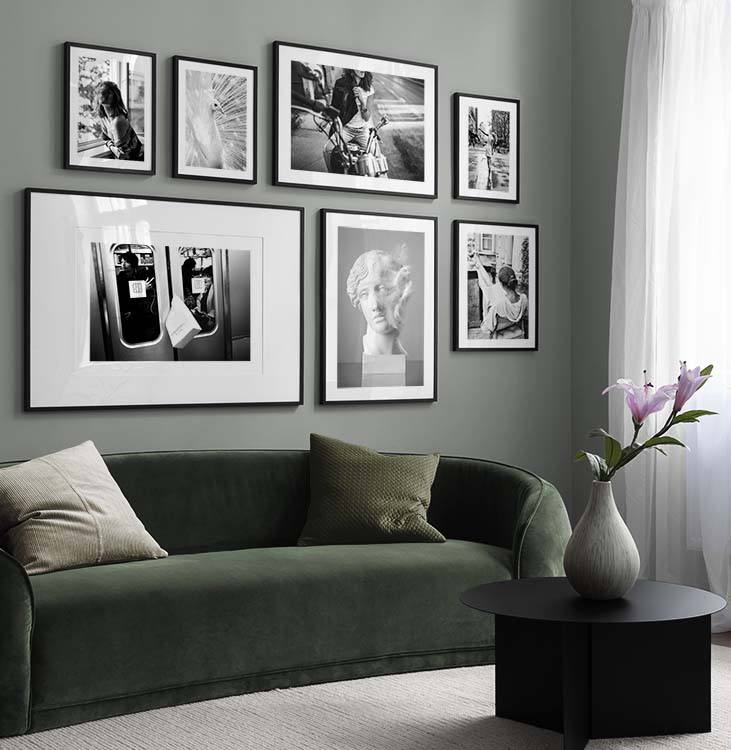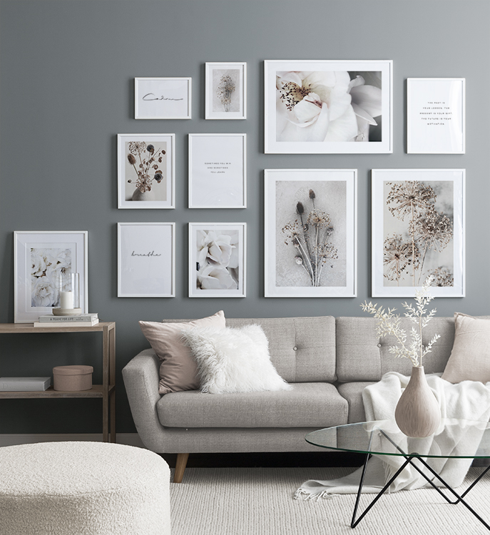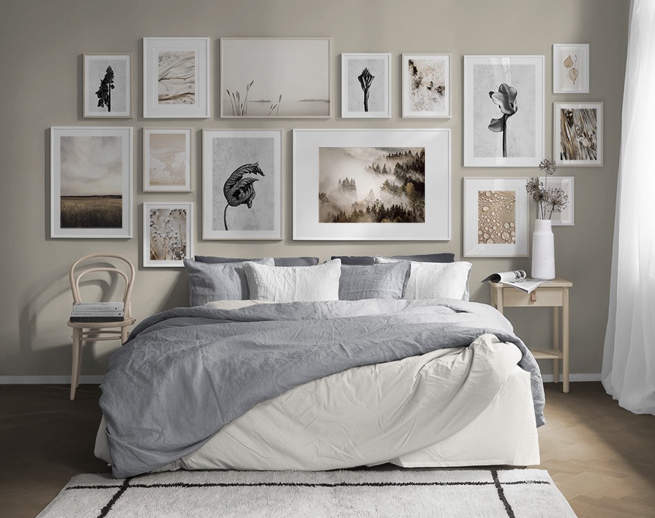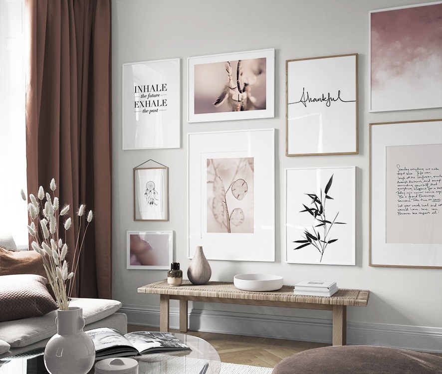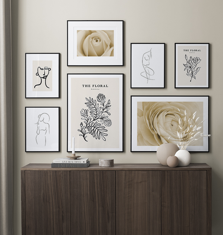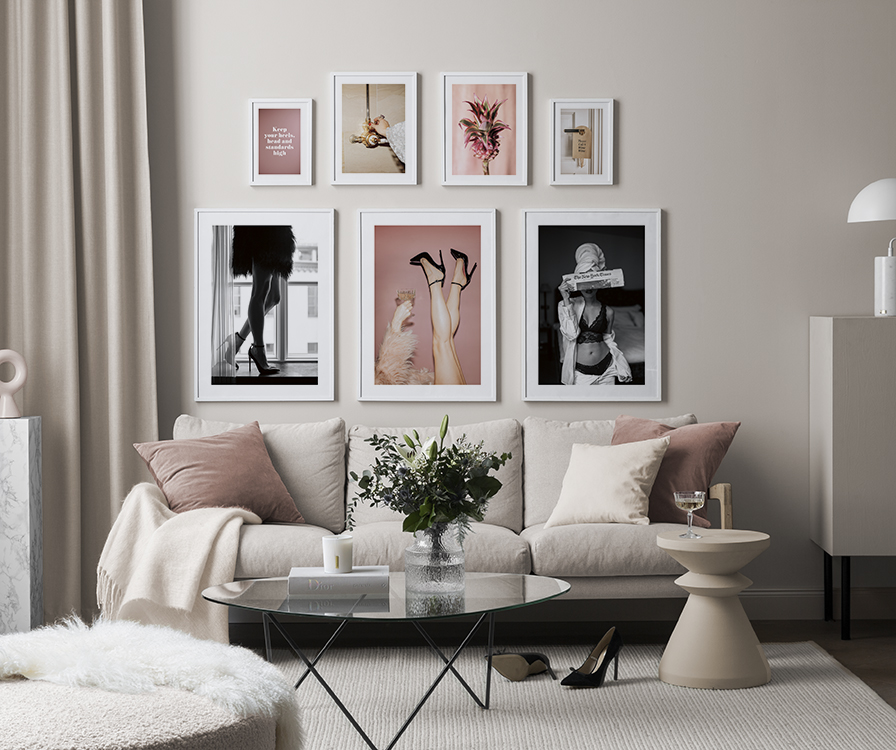 Voit muokata jokaisesta tauluseinästä oman versiosi vaihtamalla kuvia, kokoja, kehyksiä, aukkopahveja ja muita julistetarvikkeita miten haluat. Vaihtoehtoja ja mahdollisuuksia on rajattomasti – riittää, kun päästät mielikuvituksesi valloilleen. Käy hakemassa puhdasta sisustuksen iloa ja klikkaa kotiin SINUSTA kertova tauluseinä!
