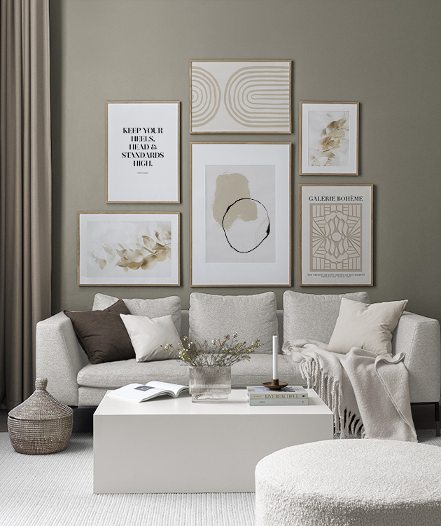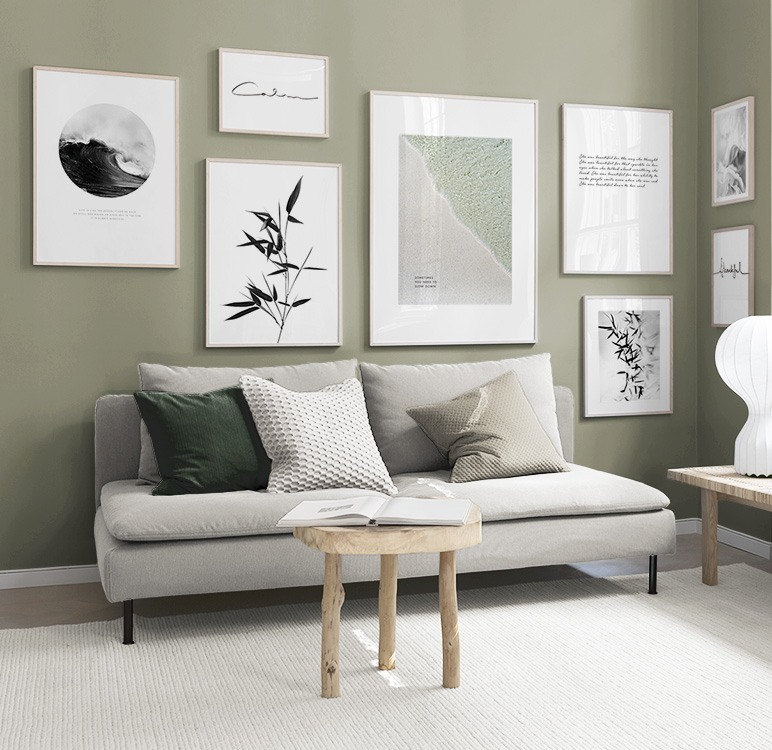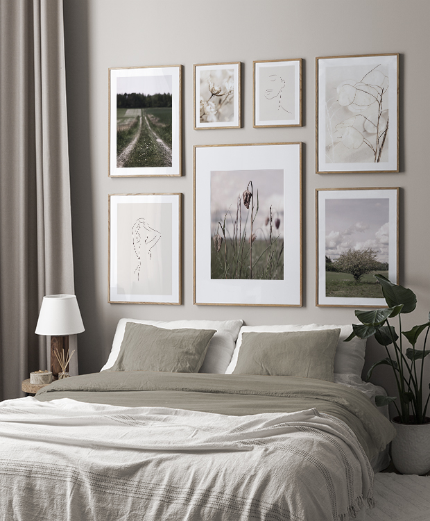 ![]() Suuri tauluseinäYhdistele julisteita kollaasissa. Toimii täydellisesti suurikokoisilla seinäpinnoilla. Ripustathan taulut keskitetysti ja huomioi, etteivät ne tule liian korkealle. Kollaasin mitat: 181x117 cm sisältäen 7 cm:n välit. | ![]() Suuri tauluseinäYhdistele suuria motiiveja pienempien aiheiden kanssa niin saat elävämmän tauluseinän. Kollaasin mitat: 184x137 cm sisältäen 7 cm:n välit. |