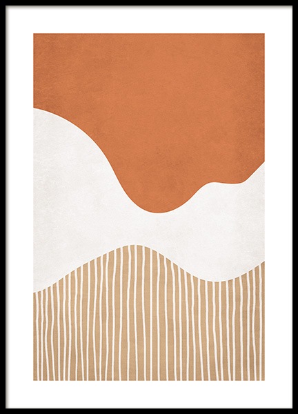 Handpicked Graafinen kuvitus ruskeista ja oransseista abstraktin vartalon muodostavista muodoista beigellä taustalla. Jos sisustustyylissäsi on moderneja vaikutteilla, graafinen taide sopii sinulle täydellisesti! Ripusta tämä juliste täydelliseksi pariksi Body Shapes No2:n kanssa.