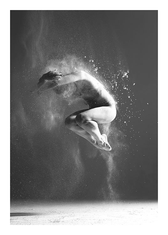 Handpicked Juliste, jossa on mustavalkoinen valokuva tanssijasta vangittuna mahtavaan liikkeeseen. Todella tyylikäs ja katseenvangitseva kuva, joka on uskomattoman hieno minkä tahansa huoneen seinällä. Katso myös valikoimamme muita julisteita kategoriassa Valokuvataide. Monet motiiveista ovat erityisen hienoja yhdessä. Julisteessa on sisäänrakennettu kehyskartonki, joka tuo kuvan kauniisti esille.