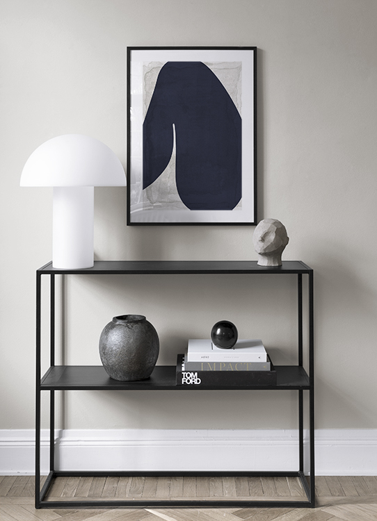Handpicked Graafinen abstrakti kuvitus taivutetusta sinisestä jalasta beigellä taustalla. Jos haluat luoda kotiisi modernin mutta ajattoman ilmeen, valitse abstraktia taidetta! Monipuolisella tyylillä on runsaasti tarjottavaa. Tämä juliste on myös täydellinen pari Female Form No1:lle.