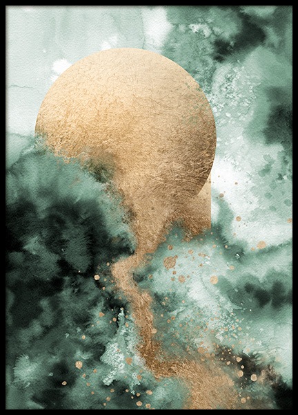 Handpicked Abstrakti taidejuliste vihreällä, valkoisella ja kultaisella pyörrekuviolla. Hellitä hieman, tuo esiin luova puolesi ja astu hetkeksi ulos mukavuusalueeltasi! Abstrakti taide ei koskaan mene pois muodista, eikä tämä juliste tee poikkeusta.