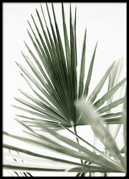 Handpicked Kasviaiheinen juliste minimalistisella aiheella vihreistä palmunlehdistä. Tämä tyylikäs valokuvataulu sopii täydellisesti sellaiselle, joka haluaa modernia ja minimalistista taidetta koristamaan esimerkiksi olohuonetta tai makuuhuonetta.