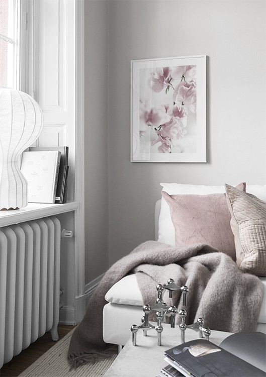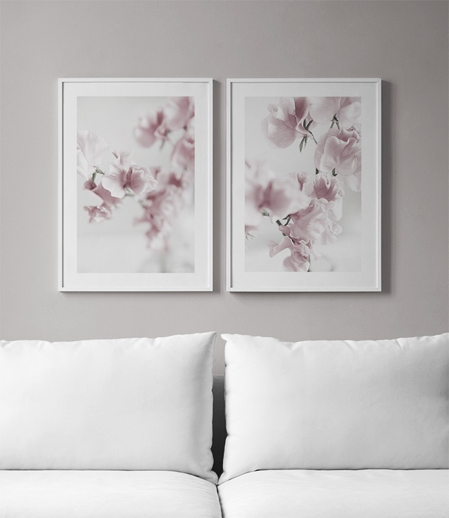 Handpicked Kaunis juliste, jossa valokuva vaaleanpunaisista kukista. Tämä kasviaiheinen mustavalkoinen valokuvataulu sopii täydellisesti esimerkiksi olohuoneen koristamiseen. Vaaleanpunainen kasviaihe sopii jokaiseen kotiin ja voidaan myös yhdistellä muiden taulujen kanssa. Julisteessa on valkoinen reunus, joka kehystää aiheen kauniisti.