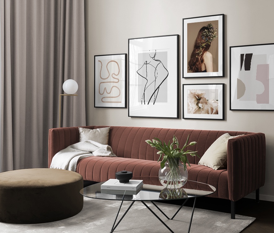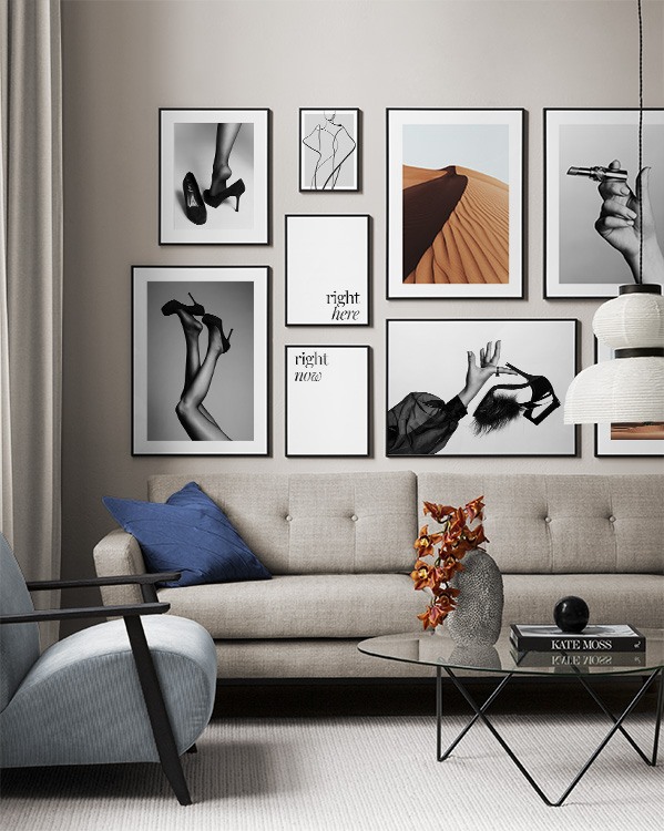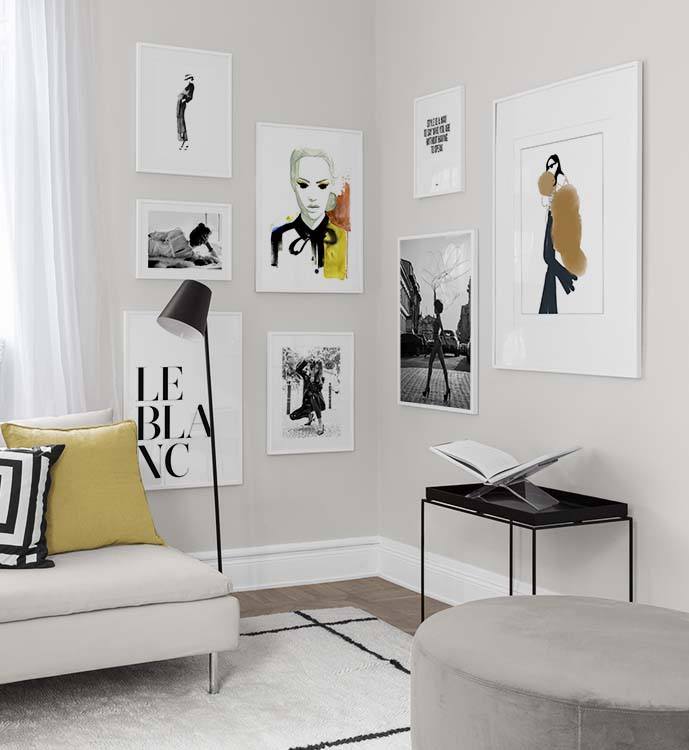 Sisusta trendikkäillä printeillä ja tauluilla muodin merkeissä Tunnettujen designereiden julisteet, coolit leopardiprintit ja aiheet muotikuvauksista muodostavat tauluseinän, jolla voit inspiroida sisustustasi.