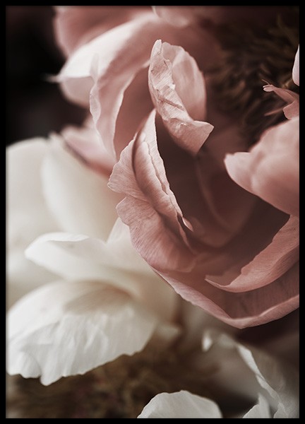 Handpicked Valokuva kahdesta isosta, vaaleanpunaisesta pionista tummanharmaata taustaa vasten. Kasviaiheiset julisteet ja taulut ovat upea lisä kotiin, johon haluat luoda lämpimän ja kutsuvan tilan. Kasviaiheiset vaikutteet tuovat uutta elämää ja tiedostavaa tunnelmaa, ja vaaleanpunaiset sävyt luovat pehmeän vaikutelman.