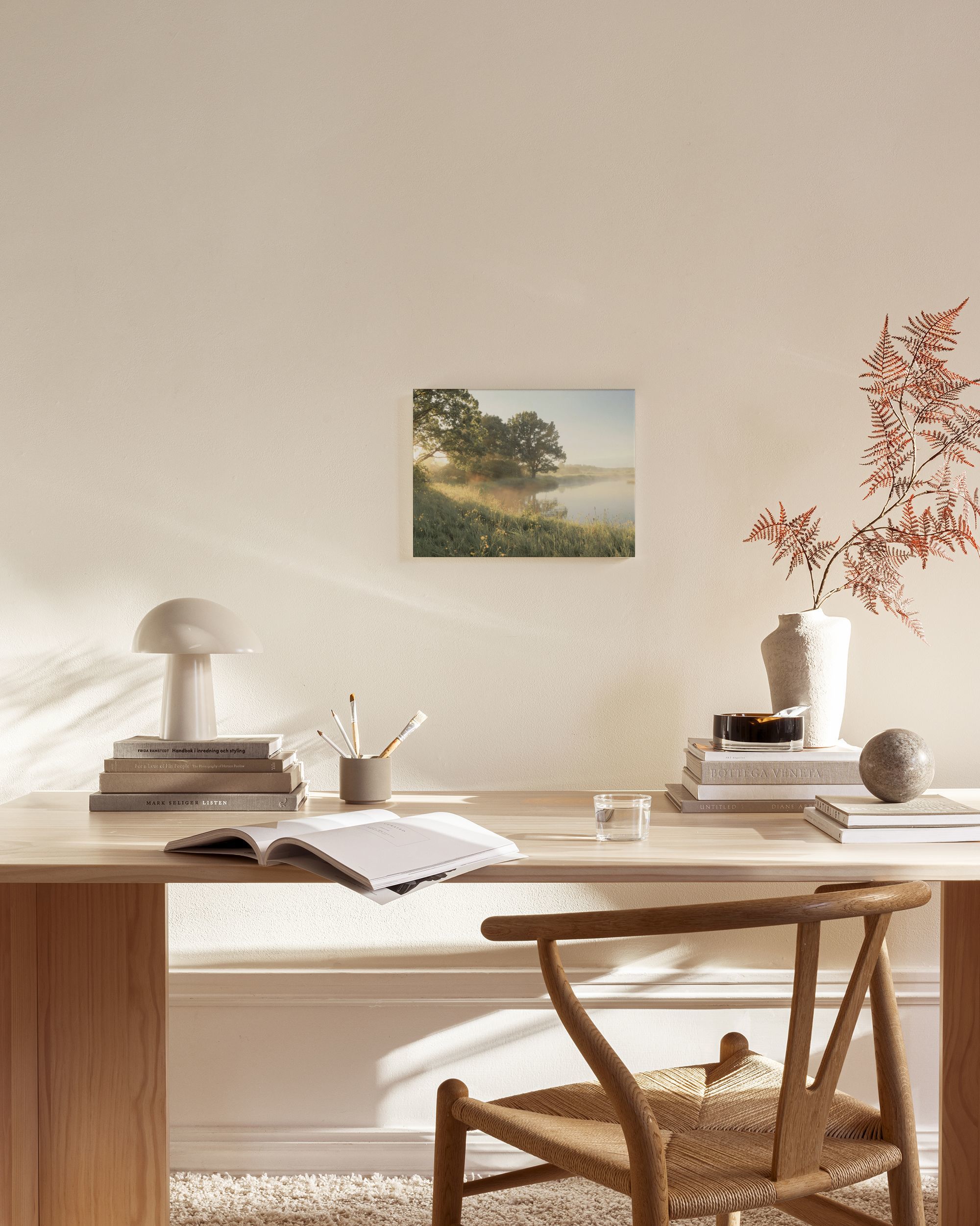 Alkaen 19,96 €Rauhallinen kanvaasi tyynestä joesta, jota ympäröivät korkeat vihreät puut. Pehmeä auringonvalo paistaa oksien läpi ja luo kauniita valo- ja varjopelejä vehreälle ruoholle.